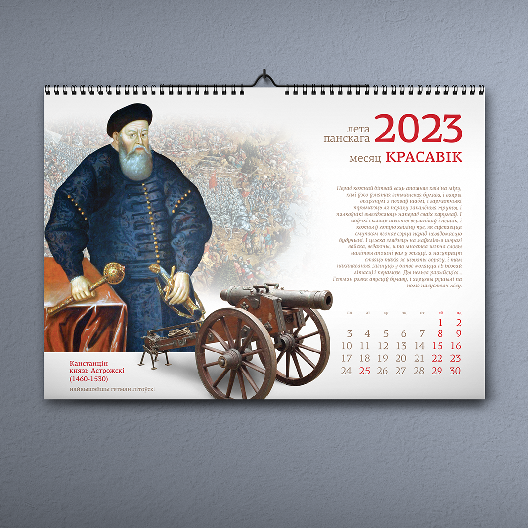 Гэта каляндар са славутымі дзеячамі беларускай зямлі: Еўфрасінняй Полацкай, Кірылам Тураўскім, вялікім князем Вітаўтам, гетманам літоўскім Канстанцінам Астрожскім ды іншымі выбітнымі асобамі беларускай гісторыі. Набыць каляндар можна на сайце imagopress.