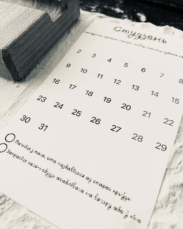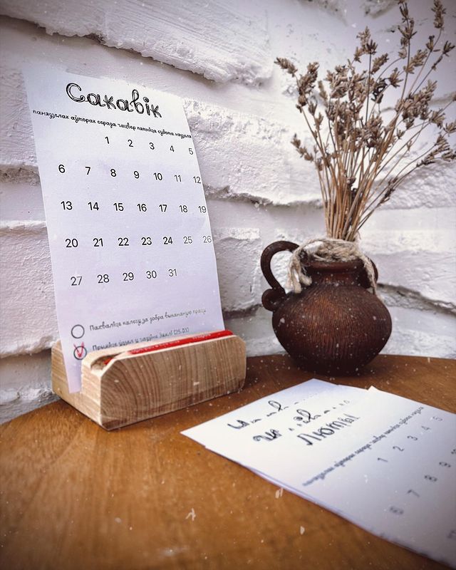 Лаканічны каляндар створаны, каб натхняць вас кожны месяц на добрыя ўчынкі, увесці добрыя справы ў звычку. Складаецца з драўлянай падстаўкі 6*9 см і 12 лісткоў. Замовіць можна ў акаўнце сямейнай майстэрні @ageeva_artspace.