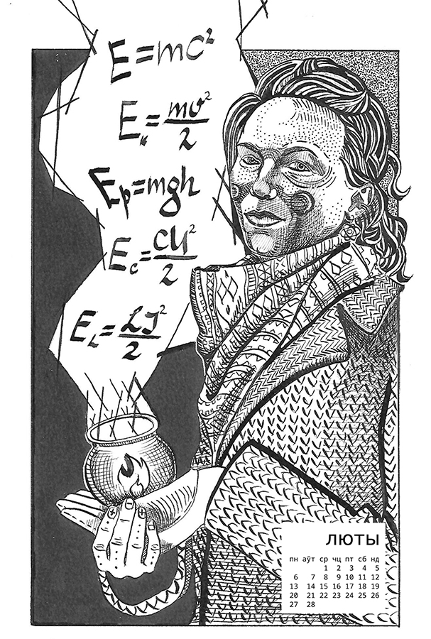 Рэпетытарка, папулярызатарка фізікі па-беларуску і мастачка Святлана Волчак стварыла каляндар пра Тэорыю Струн. Гэта фізічная тэорыя, якая спрабуе аб’яднаць у адно 4 фундаментальныя ўзаемадзеянні: моцнае, слабае, электрамагнітнае і гравітацыйнае. Згодна з ёй у аснове будовы свету ляжаць “струны” і “браны”, і розныя ваганні струн з’яўляюцца рознымі элементарнымі часціцамі.