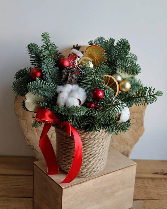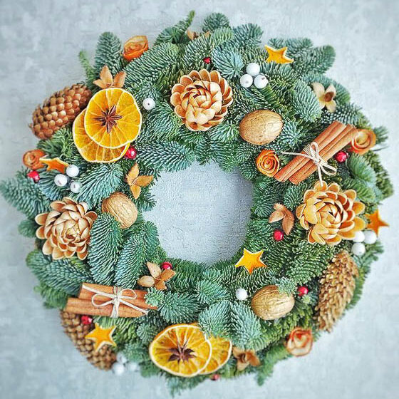 Фларысты ў перадкалядны перыяд адкладаюць кветкі ўбок і ствараюць прыгожыя кампазіцыі з піхты, ягад, бавоўны, фізалісу, эўкаліпту ды іншых прыродных матэрыялаў, каб напоўніць жытло натуральным пахам і стварыць навагоднюю атмасферу.