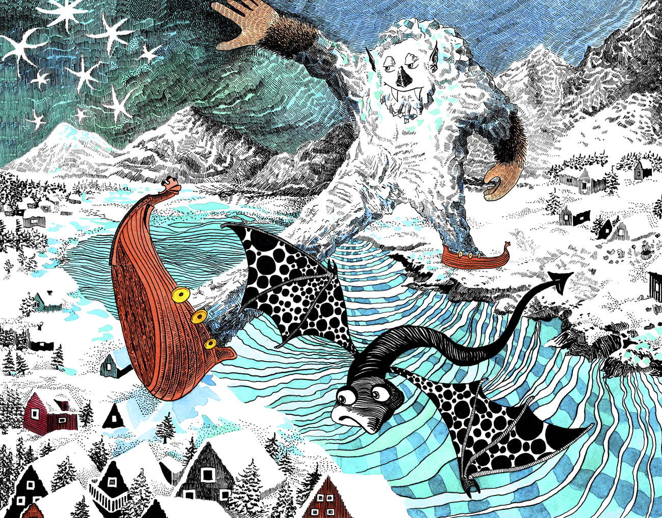 Усе гэтыя элементы прысутнічаюць у казцы пра Ледзянога волата, якая пры першым жа чытанні намалявала ў маім уяўленні Волата, халоднага, старажытнага (які памятаў нават гнеў бога Тора), які абудзіўся ў Скандынавіі пасля вельмі доўгага сну ў свеце тэлеграфных правадоў, кавы і чыгунак. Волат разам са сваім міфічным спадарожнікам Альвам адпраўляецца падарожнічаць па Скандынавіі ў сямімільных ботах, даследуючы, наколькі людзі “сталі дурнейшыя” за апошнюю тысячу гадоў. У сваім падарожжы Волат знаходзіць фінскага хлопчыка, з якім пачынае гульню ў загадкі, і ад зыходу такой гульні залежыць жыццё герояў. Чым жа скончыўся інтэлектуальны двубой смелага хлопчыка і старажытнага, страшнага Ледзянога волата…можна даведацца, прачытаўшы гэтую казку ў цудоўным перакладзе на беларускую мову Алесі Башарымавай.
