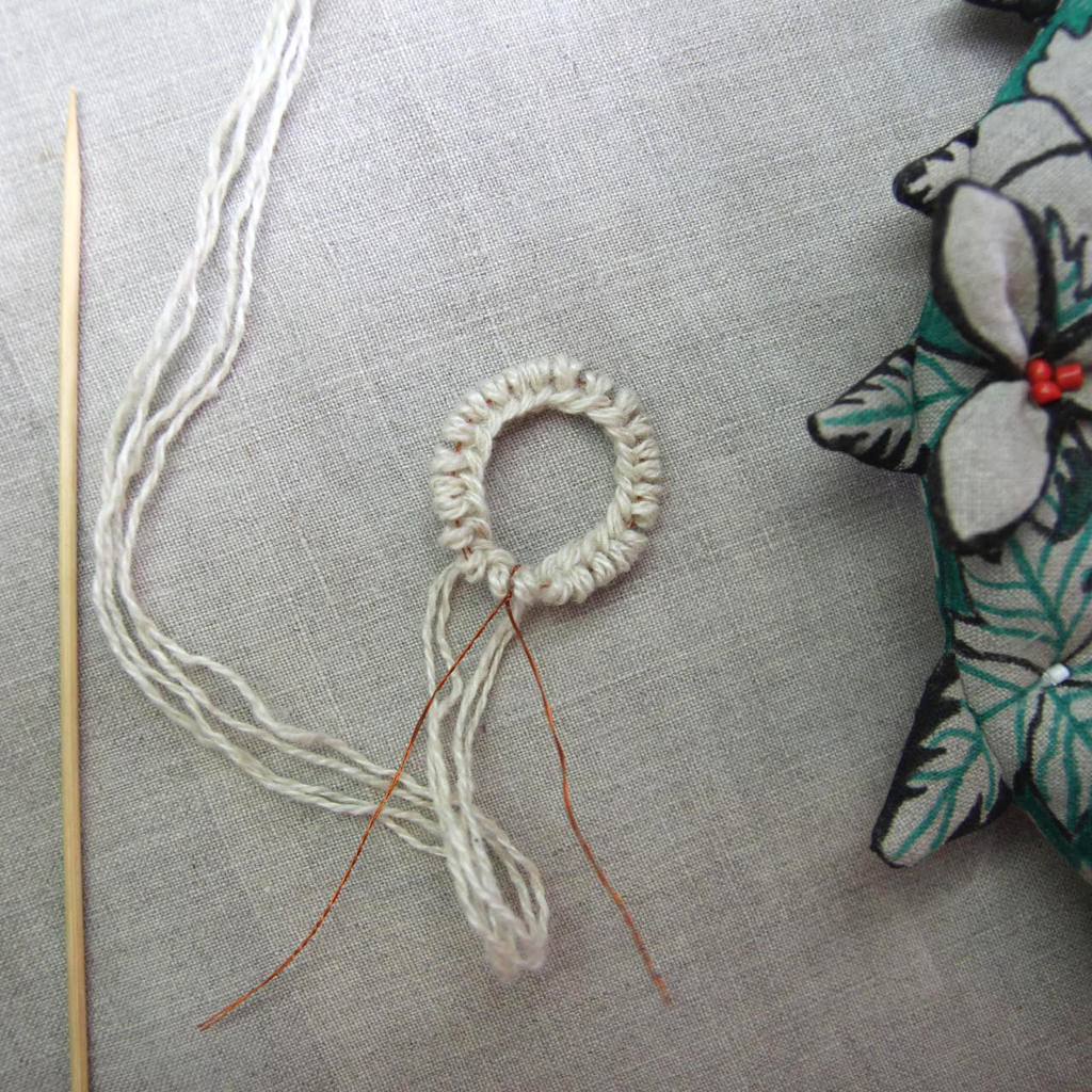 Сшываем дэталі вянка паміж сабой вонкавым бокам унутр, утачыўшы “пялёсткі”, якія пажадана размеркаваць па вянку сіметрычна. Не зашываем да канца “галаву” анёла – туды мы будзем пазней ушываць “валасы” з нітак.