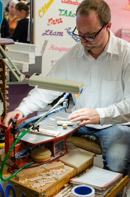 Сярод прыкладна трох сотняў удзельнікаў можна сустрэць майстроў, прадстаўнікоў крам творчасці, майстэрняў і нават невялікія сямейныя прадпрыемствы. Скарыстаўшы магчымасць, я задала некалькі пытанняў прадстаўніку такога сямейнага бізнесу Cominter Dinosaure, звязанага з вытворчасцю і продажам матэрыялаў для працы з дрэвам: