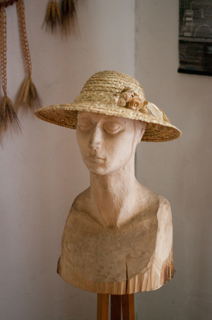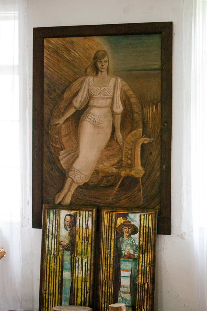 Вянчальныя кароны, вышытыя саломкай, саламяны зубр, які ўражвае сваімі памерамі, калядныя маскі – гэта тое нямногае, што прадстаўлена з работ Веры Салдатавай у пакоі-музеі саломкі. Ёсць тут і вынікі творчай дзейнасці гаспадара дома: жывапісныя палотны, а таксама іконы, якія Аляксандр Салдатаў піша па старадаўніх тэхналогіях выключна натуральнымі фарбамі: расцёртымі ў пыл мінераламі, у якія дадаецца яечны жаўток і трохі квасу.