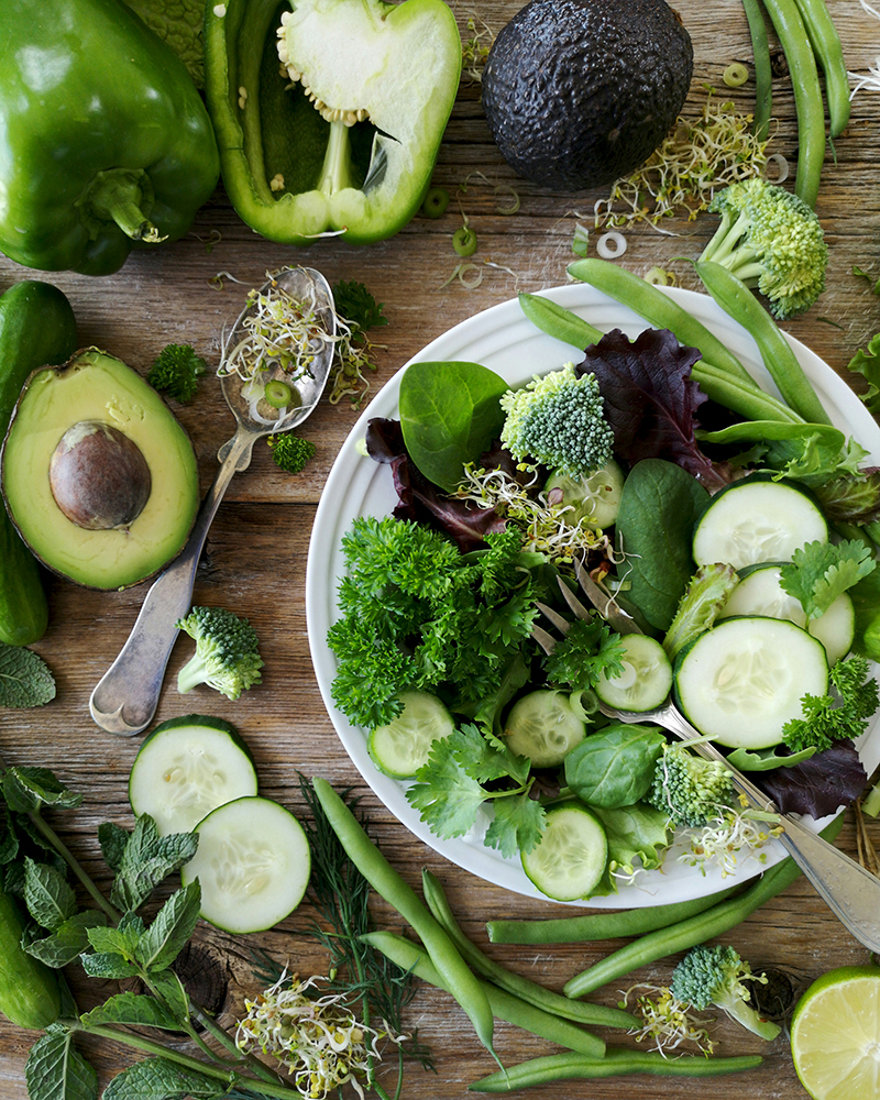 Также в такую подачу хорошо впишутся огурцы, горошек, стручковая фасоль, киви, блюда из кабачков, различные виды зелени и капусты, зеленый лук, авокадо, микрозелень и другие продукты нейтральных и зеленых оттенков. А также любое блюдо, щедро посыпанное зеленью:)