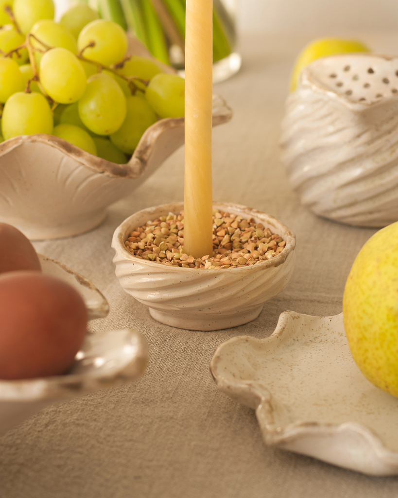 Изделия мастеров в сервировке — всегда хороший выбор, они сделают вашу сервировку еще интереснее! В нашей фотосессии были использованы керамика от @harlachyk.ceramics, льняная скатерть от @barninak_ и натуральные свечи из пчелиного воска от @beeheartwhispering.