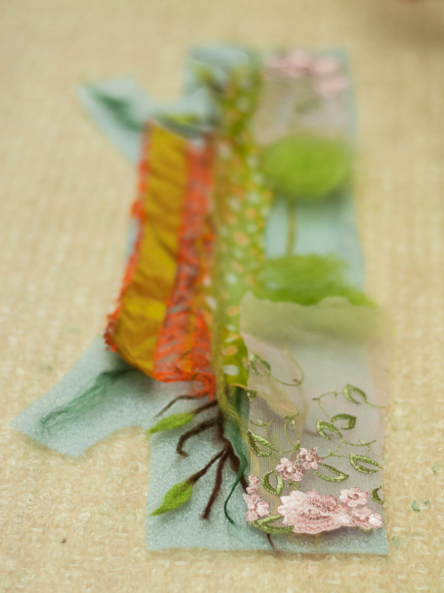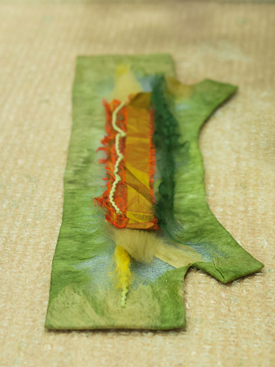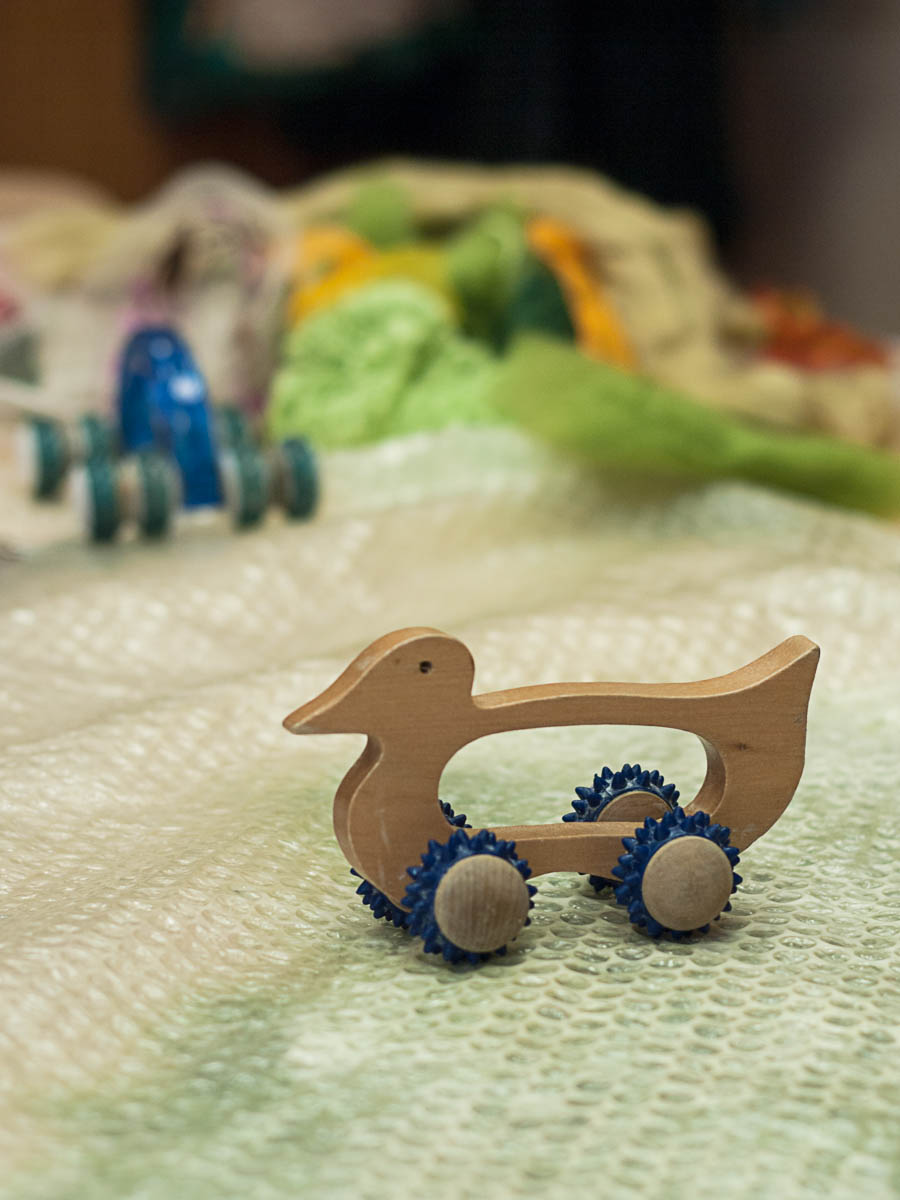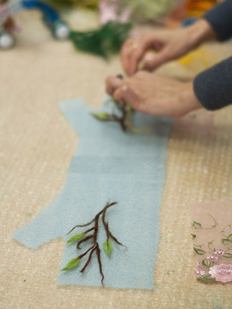 Ольга предложила нам валять в технике обратной раскладки: когда на шаблон сперва выкладывается декор, а затем – шерсть. Самое интересное в валянии, конечно же, декорирование изделий.