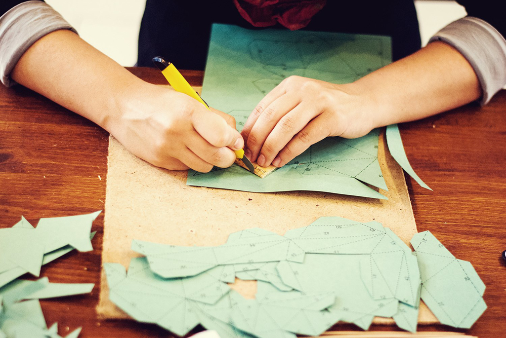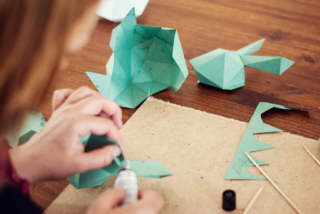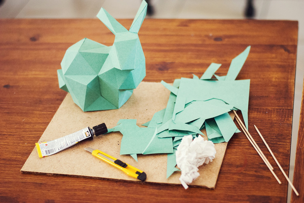 Команда нашего журнала посетила мастер-класс по созданию интерьерной полигональной скульптуры из бумаги, который проходил в лофт-проекте «БАЛКИ». Вела мастер-класс дизайнер Елена Наумович. Результатом нашего участия стал заяц аквамаринового цвета.