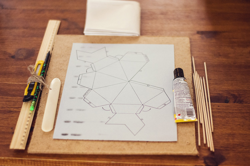Постарайтесь работать аккуратно: развертку вырезайте строго по линиям, чтобы не было подтеков не наносите много клея. От этого зависит качество вашей работы.