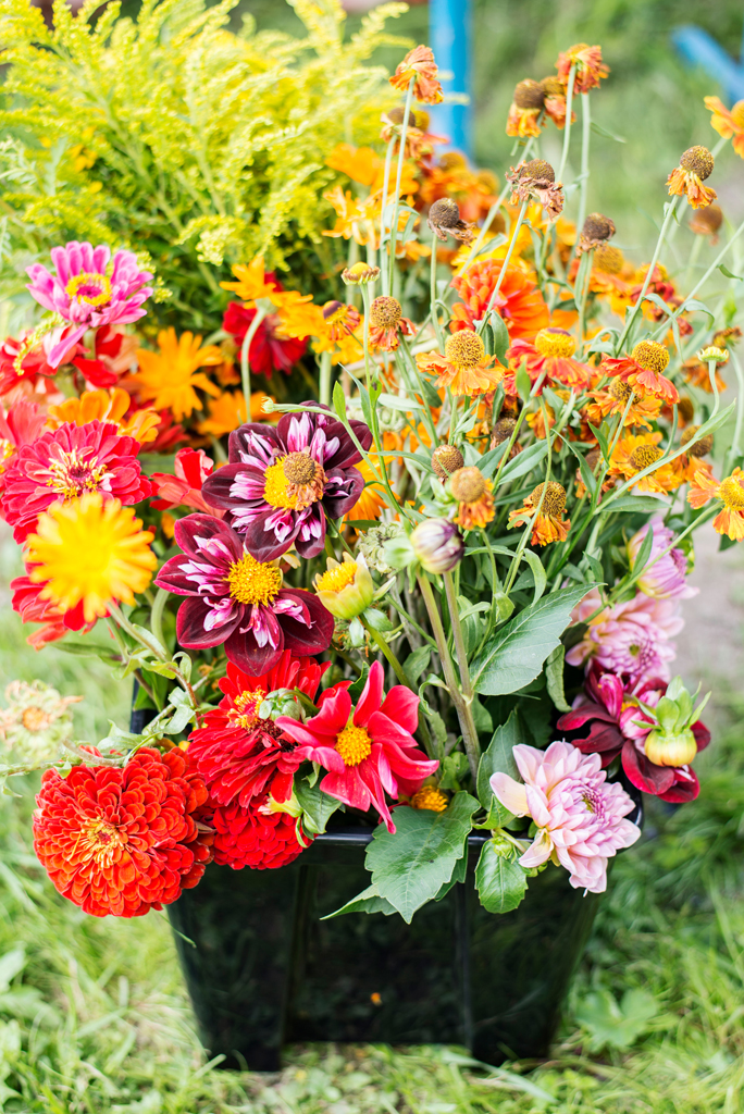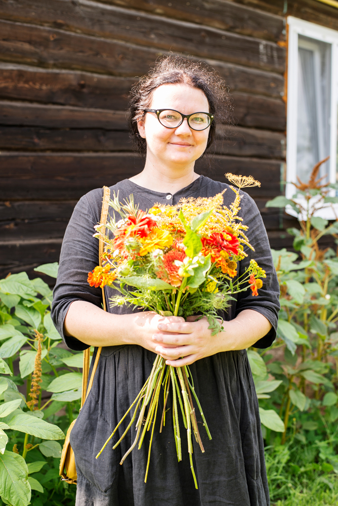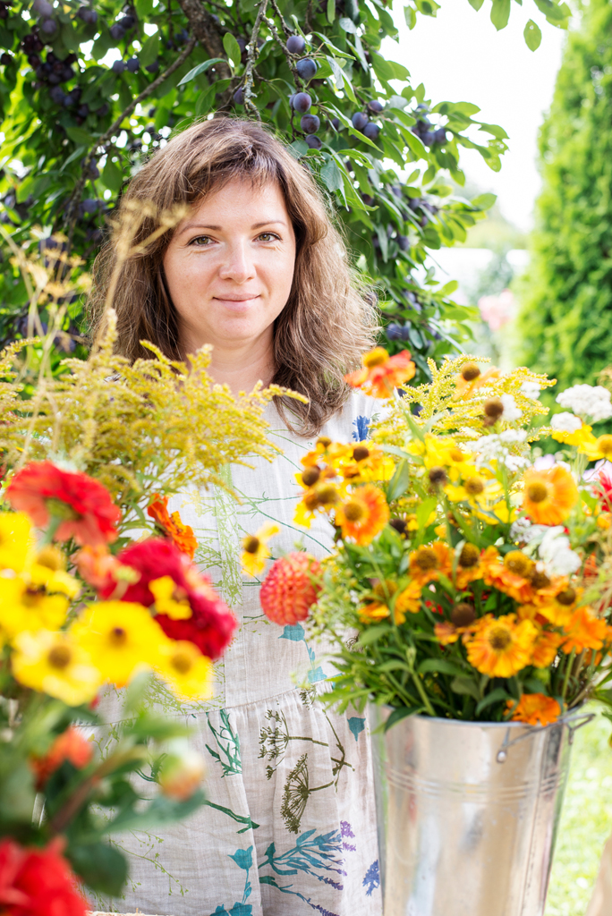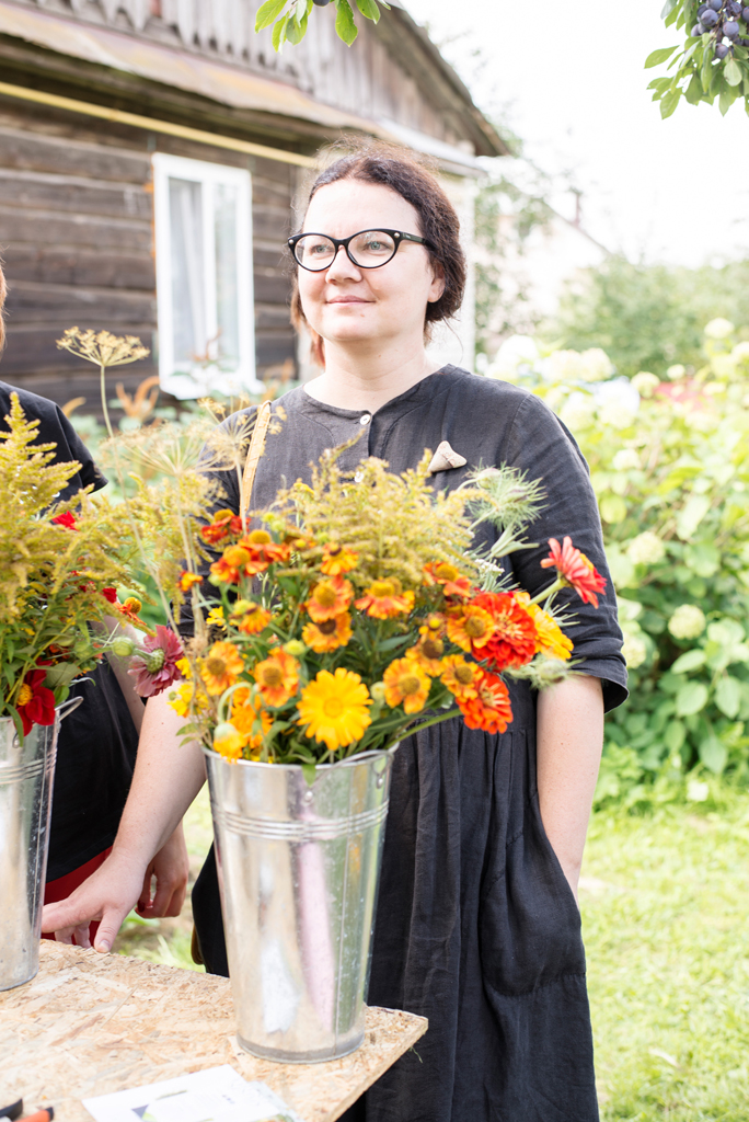 Каждый участник встречи получил в распоряжение охапку свежих цветов в вазе, которые в итоге под руководством Екатерины собрались в аккуратные и красивые букеты. Как же здорово было возвращаться домой, держа в руках композицию из цинний, гелениумов, георгинов и других растений!
