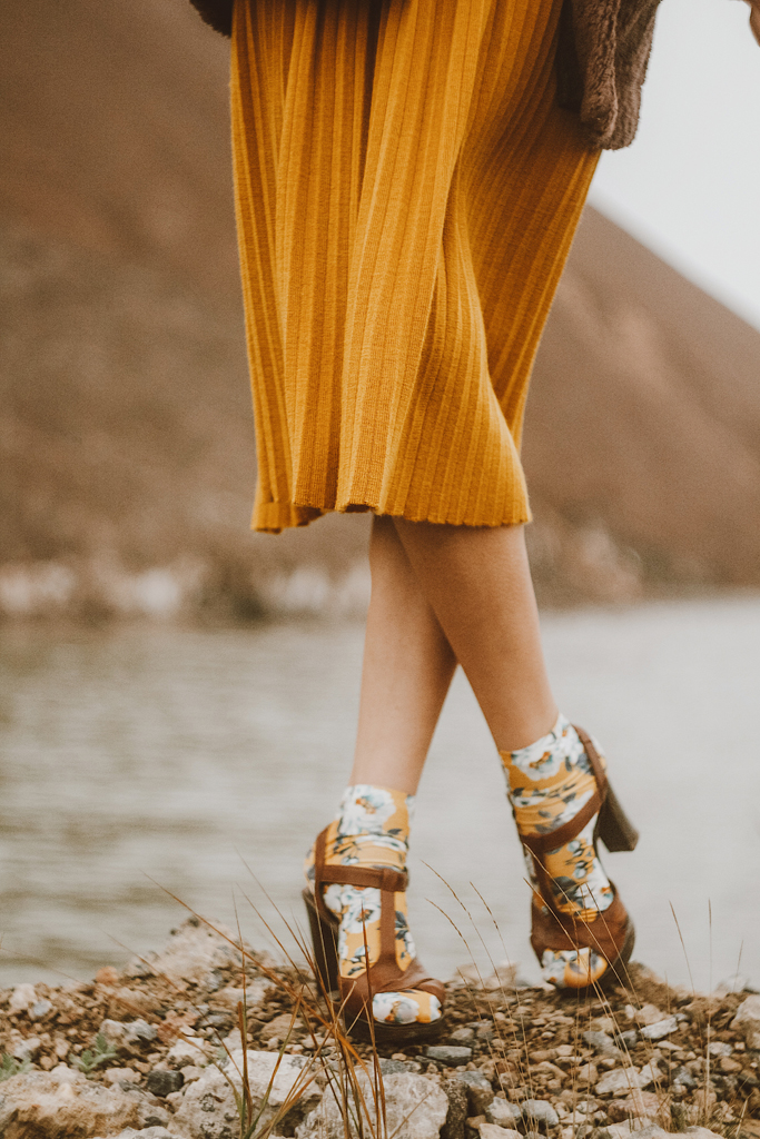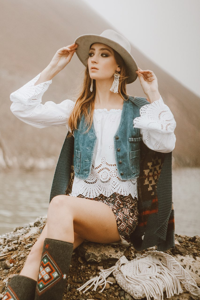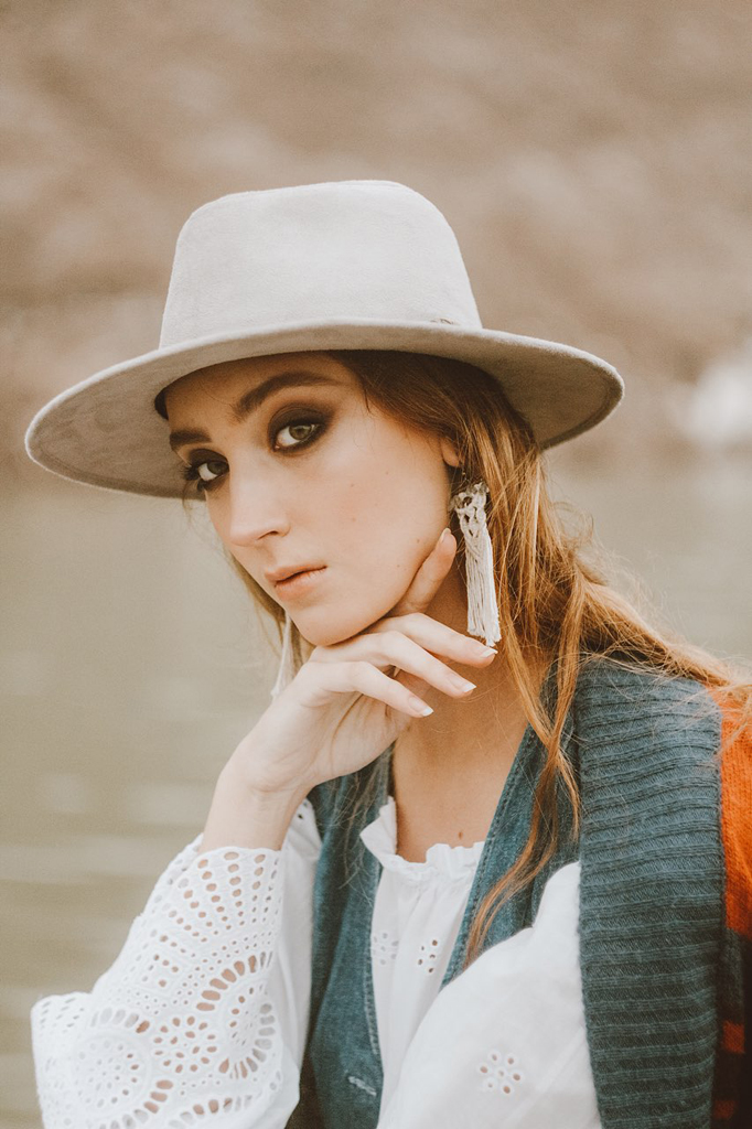 Вдохновение на фотосъемку пришло вместе с соленым ветром. Фантастические пейзажи солигорских карьеров не оставили нас равнодушными: в голове сразу родился образ девушки-странницы. В ее волосах играет воздух, а пальцы перебирают струны гитары. Претворить эту историю в жизнь помогла и легкая туманная дымка, и отвесные горы, и дизайнерские детали образов модели.