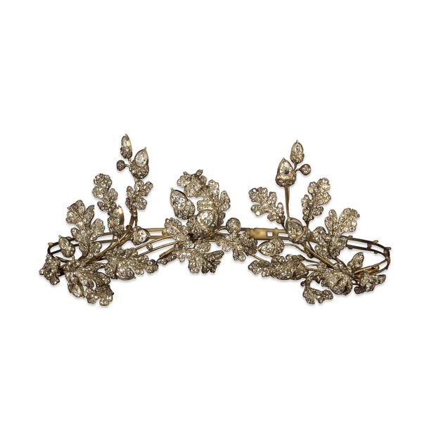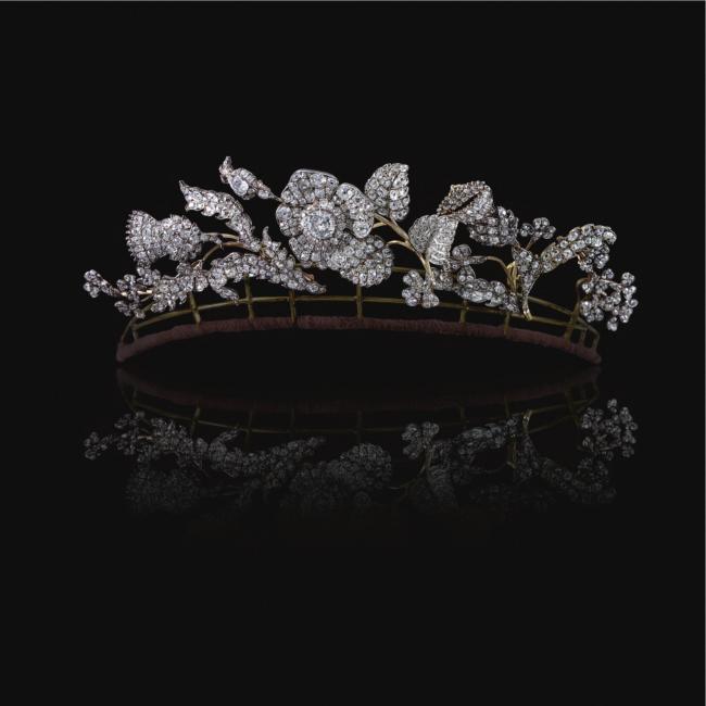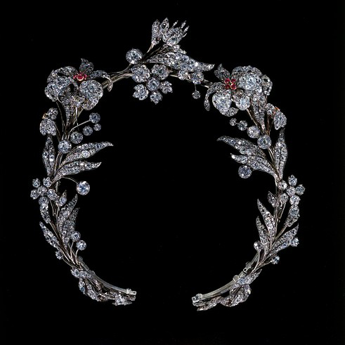 Богатые дамы (члены королевской семьи или аристократки) надевали на балы цветочные венки – тиары и букеты – броши, изготовленные не только из живых и искусственных цветов, но и из драгоценных камней, золота и серебра. Драгоценности, имитирующие венки, цветы или фрукты, появились в начале 19-ого столетия и оставались популярными в течение многих десятилетий.