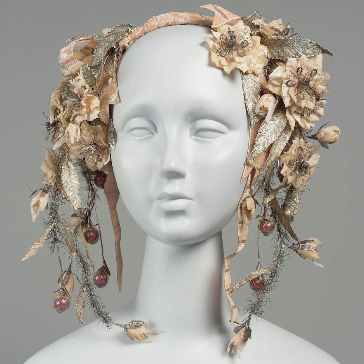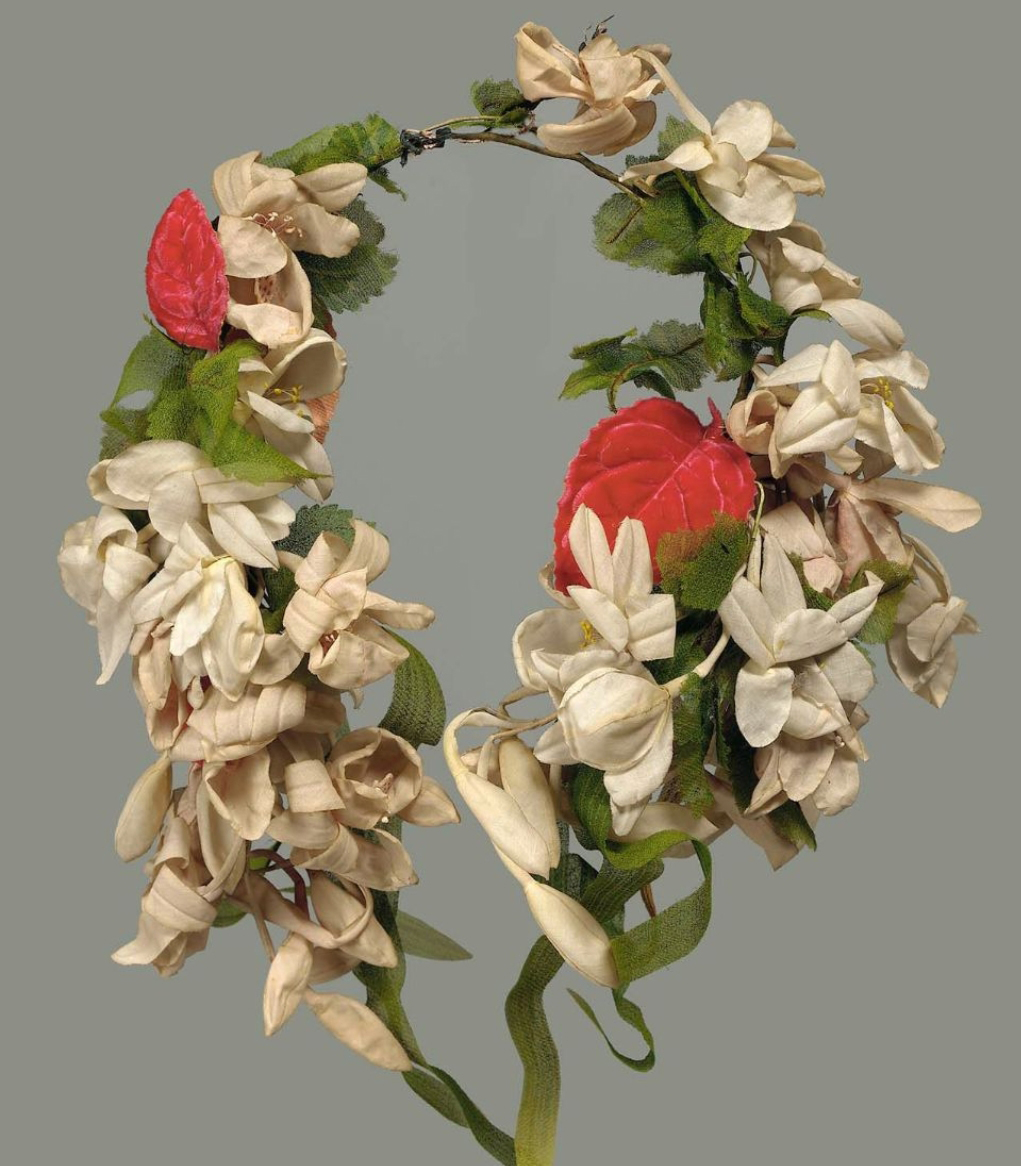 «Цветы практически никогда не выходили из моды. Но в век бидермайера было налажено производство искусственных цветов и букетов. Они по виду мало отличались от настоящих, стоили дешевле и дольше служили», – пишут в книге «Мода и стиль». Благодаря этому, в музеях костюма можно встретить украшения для волос XIX века из искусственных цветов.