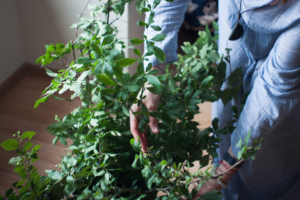 Не те ветки выбирают. Новички часто думают, что тонкие ветки выглядят красивее толстых. Но в икебане ветка должна быть сильная, иначе композиция получится хилой. Также бывает, что ученикам жалко портить и общипывать цветы. А еще они часто боятся трогать листья, а потом могут так разойтись, что ничего на ветке не остается.