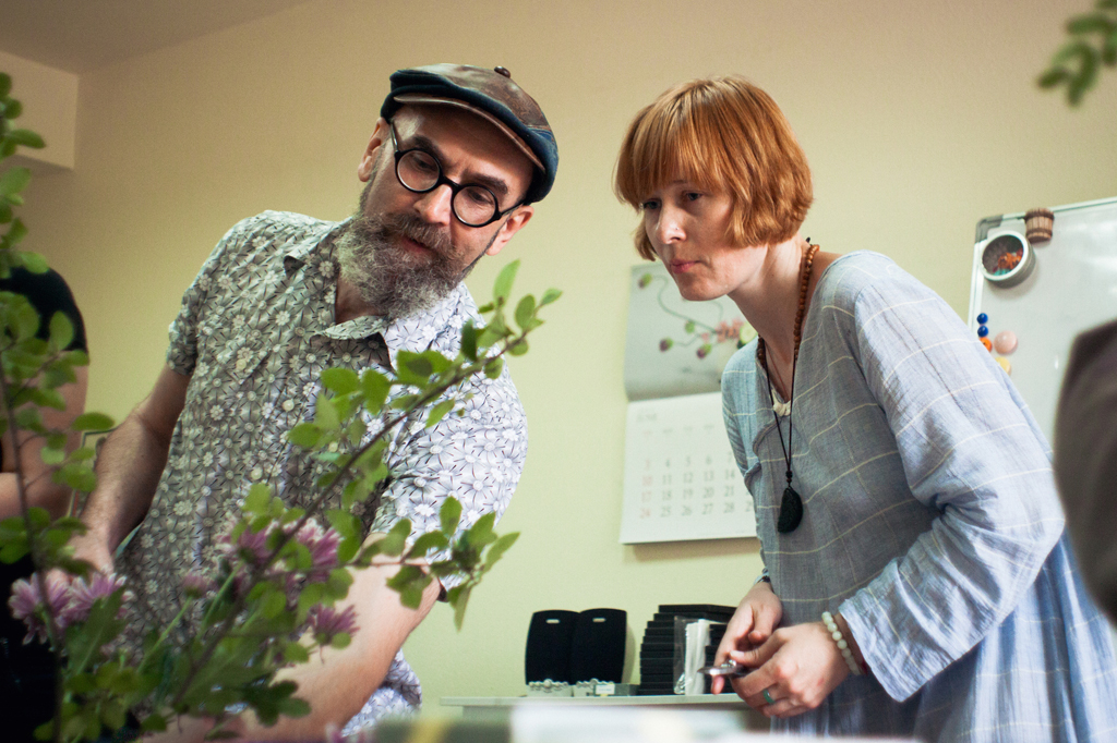 Уголок Страны восходящего солнца находится на третьем этаже здания. Занятия по икебане проводятся в просторной комнате, где на полках стоят исключительно японские журналы, а на стене висит белый с красным кругом посередине флаг. Мы познакомились с председателем «Hagakure» Святославом ГАЕВСКИМ и героем нашего интервью Анатолием ЕРЫШЕВЫМ, белорусским сэнсэем по части икебаны. К слову, Анатолий еще и искусствовед и преподаватель на кафедре восточных языков БГУ. Пока гостеприимный председатель разливал нам чай по миниатюрным японским чашкам, мы заговорили с преподавателем. В ходе интервью Анатолий много жестикулировал и бегал по комнате, показывая то ветку, то японский учебник, а в его глазах непрерывно горели искорки. Кажется, перед нами – живое воплощение любви к своему делу.