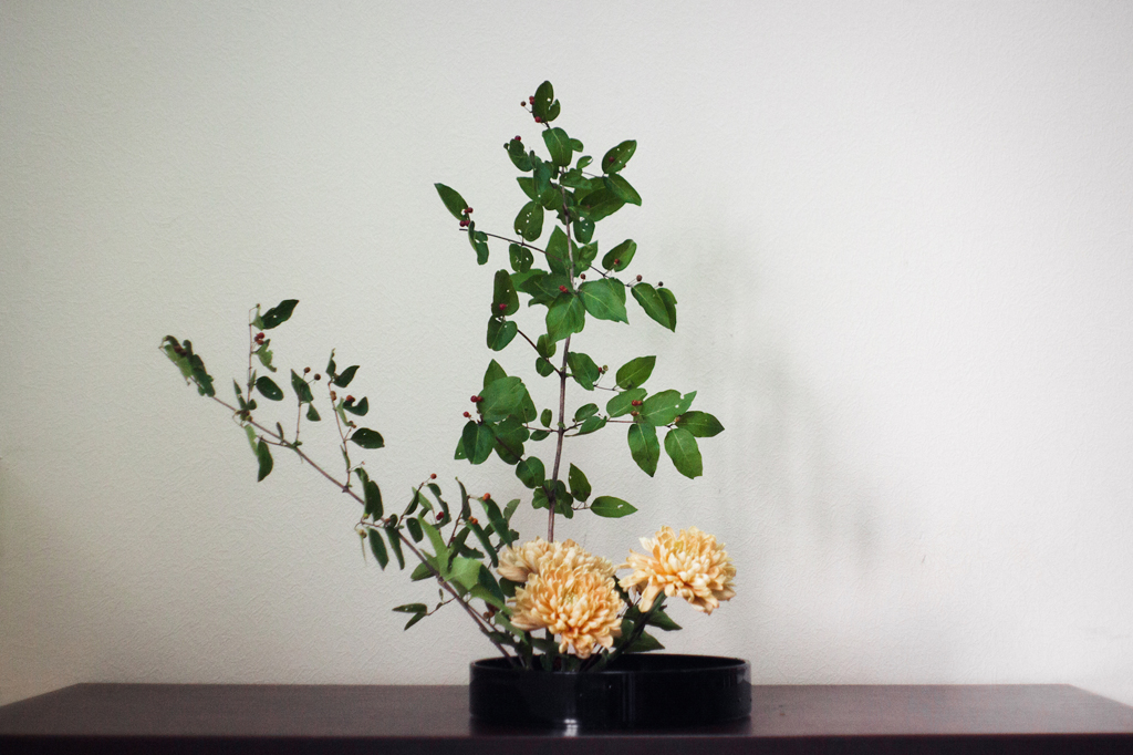 Сам я с острова Сахалин, поэтому в детстве ходил в горы и там собирал растения. В первый раз я сделал икебану из бересклета и какой-то коряги, а потом начал добавлять настурции. Думаю, у меня еще тогда все правильно получалось.