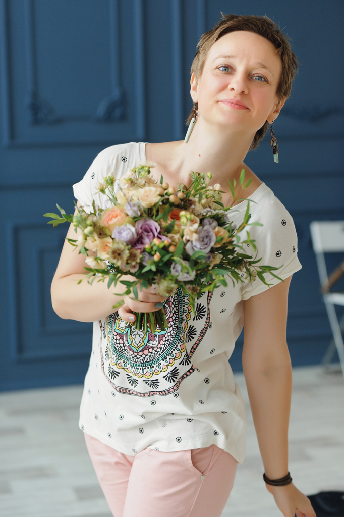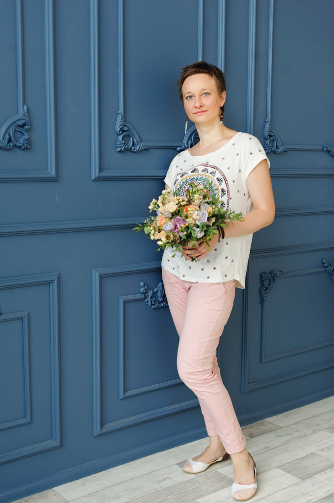 Моей флористической альма-матер стала профессиональная школа флористики и ландшафтного дизайна ЭФдизайн. Школа предлагает обширный курс не только по теоретической и практической флористике, но и по истории искусств, истории костюма, колористики. Все это было для меня не в новинку, но обучение позволило взглянуть на многое под другим углом и успешно применить это в профессии. Мое флористическое образование довольно фундаментально: знания и умения разносторонние, что позволяет делать работы узнаваемыми. Мои заказчики и коллеги подмечают это.