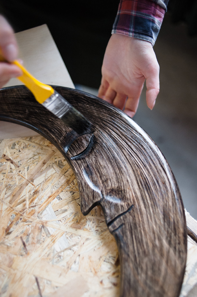У меня есть человек, без которого проекта WndrWood вообще не получилось бы. Это мой отец, который готовит основы для рам: строгает и клеит доски, вырезает очертания рамы. После чего в процесс вступаю я: дорезаю раму резцами, придаю ей объем, занимаюсь долгой и кропотливой шлифовкой (не менее 5 раз: от грубой шлифовки до самой мелкой, после которой дерево подобно стеклу, идеально гладкое), покрываю раму краской (если нужен определенный цвет) либо лаком (если нужно выявить структуру дерева), наношу все остальные финальные штрихи.