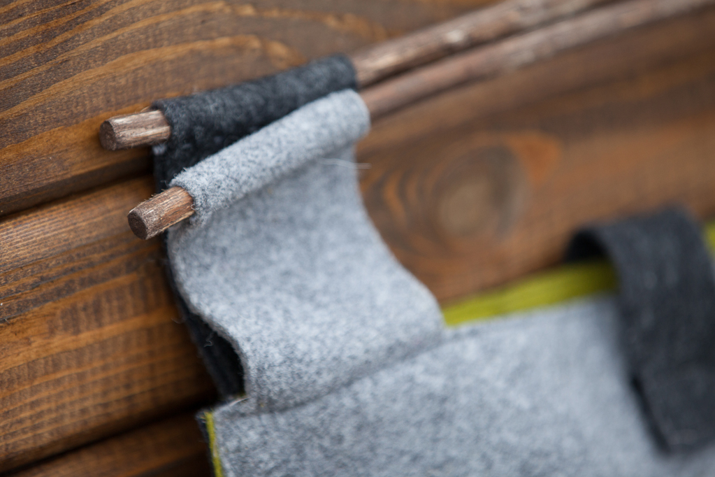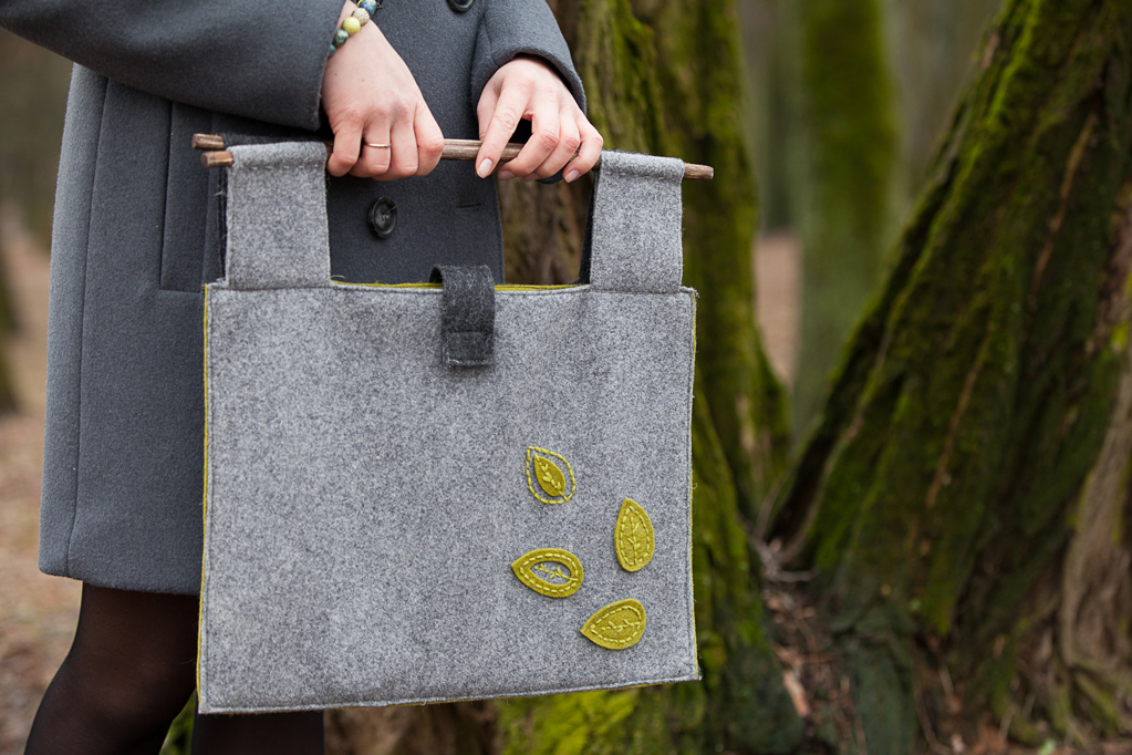 Каб падрыхтаваць галінкі да выкарыстання ў якасці ручак для гэтай сумкі, мы папярэдне залілі іх гарачай вадой на некалькі гадзін (а лепш на ноч), знялі кару, адшліфавалі наждачнай паперай і надалі тон марылкай. А пакрокавую інструкцыю, як сшыць такую сумку шукайце тут.