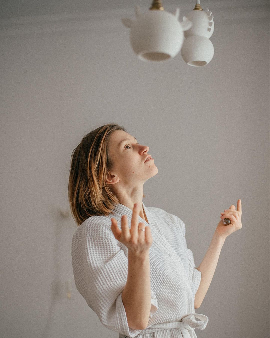 Кераміка – гэта такі чароўны працэс. Вось ты глядзіш на гэтыя лініі – табе падабаецца. Потым глядзіш на іх праз паўгода – табе ўсё яшчэ падабаецца. Значыць, гэта тое, што трэба. Аблачынка, напрыклад, наогул паўстала з вазы для садавіны. А потым я дацяміла, што яе можна перакуліць – і атрымаецца свяцільня.