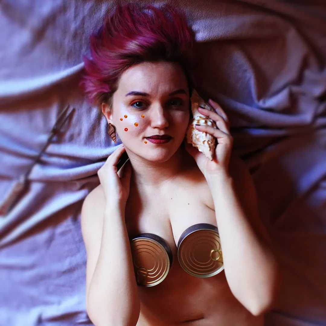 Калі я на фота без адзення, яно не перашкаджае, не перацягвае на сябе ўвагу сваёй формай і колерам, дазваляе сканцэнтравацца на іншых прадметах. Але далёка не ўсім, бо некаторыя пачынаюць выглядаць, што там бачна, а чаго не бачна. А вось, напрыклад, Русалка і мусіць быць без адзення – там маглі быць ракавінкі, але ў мяне іх не было, затое былі бляшанкі шпротаў! Наогул, я выбіраю адметныя, пазнавальныя вобразы, каб задзець за жывое, узрушыць, прымусіць выказаць сваю рэакцыю – і гэта працуе.