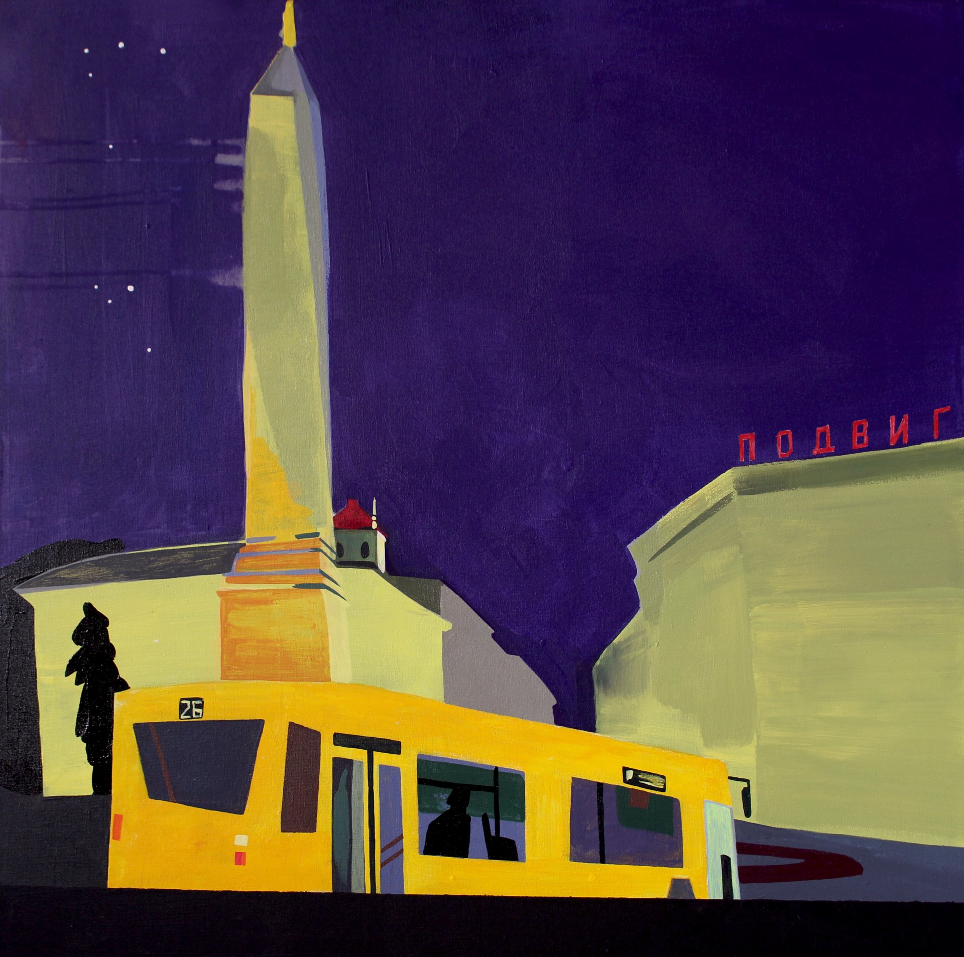 Для мяне самы знакаміты краявід Мінска нават не Чырвоны касцёл, а плошча Перамогі. Мне падабаюцца вежы, паўкруглыя будынкі з надпісамі і сам гэты абеліск. Гэта пазнавальны від Мінска – я яго малявала з розных бакоў.