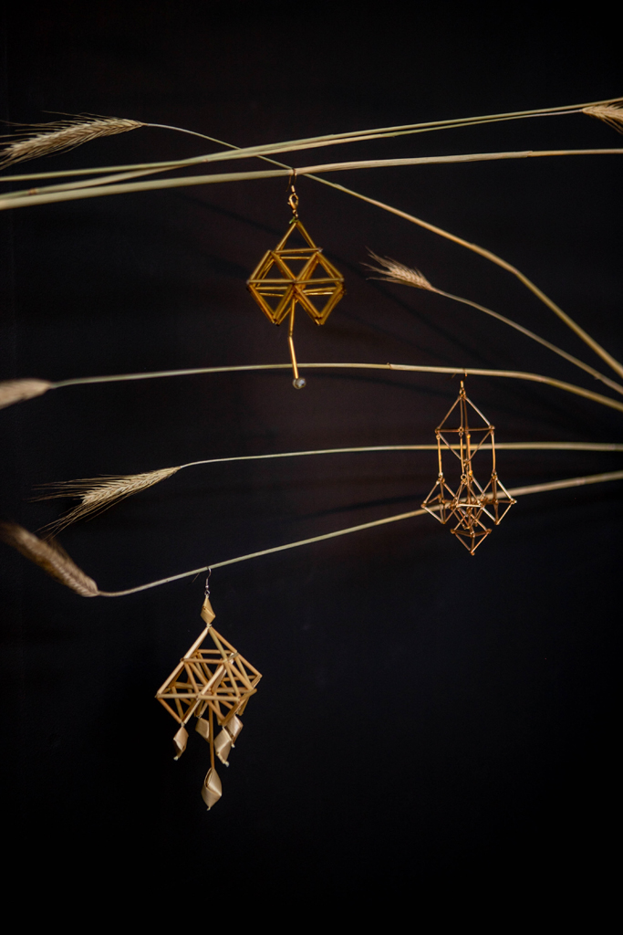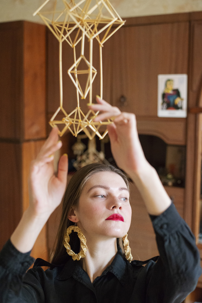 Так з’явіліся хусткі, саламяныя завушніцы ды іншыя ўпрыгожанні. Мне яшчэ з паказа калекцыі ЯDRO хацелася рэалізаваць ідэю саламяных павукоў, каб гэта было насібельна: трэба было знайсці матэрыял, які б вытрымліваў рэзкія парывы ветру і моцныя абдымкі. Бо саломка вельмі крохкая: яна пасуе для паказаў і фотасесій, але не вытрымлівае выпрабаванняў жыццём. Для гэтых мэтаў добра падышоў шклярус і метал.