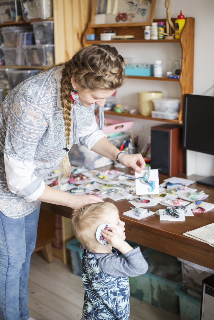Мая мама заўсёды шыла, малявала, фарбавала тканіны. У свой час сапраўдным фурорам былі яе фарбаваныя спадніцы – яны прадаваліся ў мастацкай галерэі ў цэнтры горада, і за імі стаяла чарга. Таму тканіны самых розных варыяцый, тасёмкі, стужкі, гузікі – гэтага багацця было дома ў бязмежнай колькасці. Мама кажа, што я ў 2 гады магла сядзець і нанізваць гузікі на нітку – пацеркі рабіла.