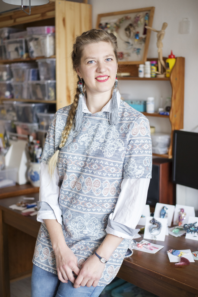 Маю творчасць робіць асаблівай прафесіяналізм, а таксама самабытнасць падыходу да працы. Некаторыя майстры ганарацца тым, што праходзілі пэўныя курсы і майстар-класы ў канкрэтных выкладчыкаў – у мяне ж адваротная сітуацыя. Я валодаю тэхнікамі і маю класічную мастацкую адукацыю. А астатняе нараджаецца ў маёй галаве, а рукі робяць. І насамрэч з такой падрыхтоўкай не важна, чым ты займаешся, – дызайнам касметычнай прадукцыі або стварэннем тэкстыльных брошак. Канешне, тэхнічна гэта розныя сферы дзейнасці. Але мастацтва застаецца мастацтвам.